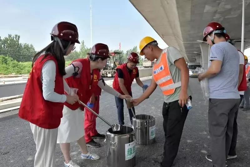 吃,一天三頓都是四菜一湯,盡量頓頓不重樣。一線建設(shè)人員忙的時候,早餐、中餐、晚餐以及夜宵,頓頓用飯盒裝好,送到工人手中。冬天,工人頂著寒風(fēng)施工,他們主動送去姜湯;夏天酷暑難熬,又送去綠豆湯、礦泉水。