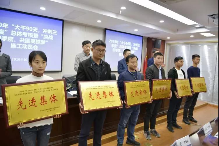 會上宣讀了2019年“大干90天,沖刺三季度”勞動競賽活動總體考核文件及“決戰(zhàn)四季度、共圓高鐵夢”勞動競賽活動通知,并對勞動競賽考核成績突出的先進集體、先進個人及項目完成情況較好的項目經(jīng)理部頒發(fā)了榮譽證書和獎牌。市綜合客運樞紐建設(shè)工程各項目經(jīng)理部、監(jiān)理單位負責人分別作表態(tài)發(fā)言。