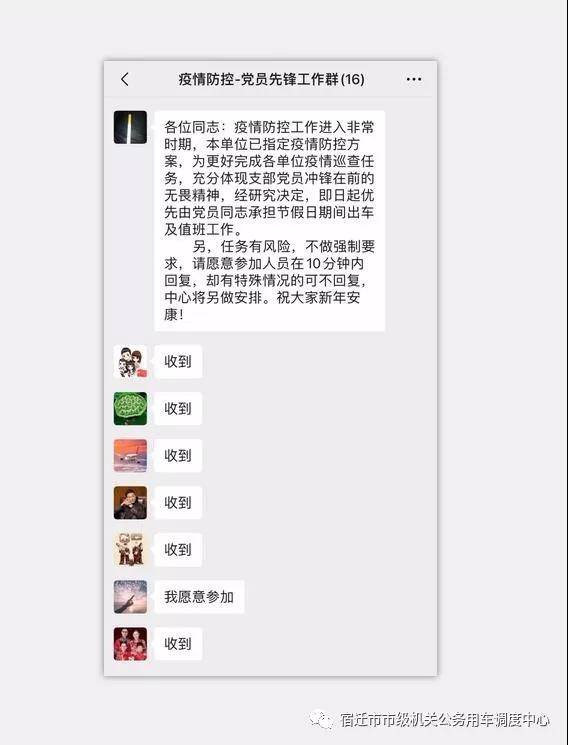 中心支部及時召開專題部署會,決定除固定服務(wù)市疫情防控小組、市衛(wèi)健委、市場監(jiān)督管理局等單位的人員以外,及時成立由“黨員+退役軍人”組成的疫情防控先鋒工作小組,作為日常機動派遣先鋒隊,全力保障市直各單位公務(wù)出行需求。自1月25日至今,中心共參與防疫一線公車保障駕駛員43人,調(diào)度車次219次,往返南京、泰州等地,高質(zhì)量完成了防控工作檢查、醫(yī)護人員接送、違規(guī)用品送檢等保障工作。
