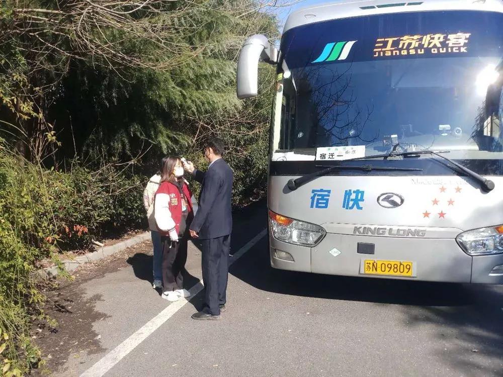 2月17日,在得到上級主管部門的許可后,宿汽集團安排車輛前往南京。經體溫檢測后,宿遷技師學院的101名學生分別乘坐4輛50座大巴,順利返回宿遷。