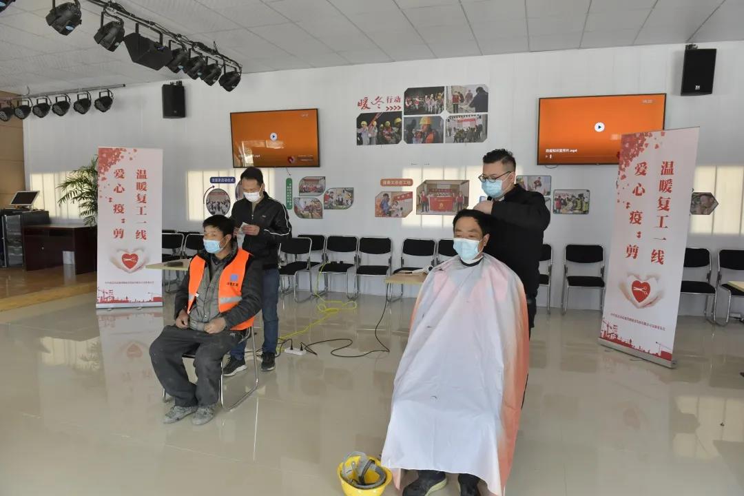 為保證理發(fā)期間秩序井然,杜絕疫情病毒交叉感染,“黨建·家”志愿者們一早就來到活動現(xiàn)場,擺好椅子,對理發(fā)工具進行全面消毒;對前來理發(fā)的建設(shè)者們進行登記、測量體溫、消毒等工作,保證建設(shè)者們在安全距離下有序理發(fā)。同時,志愿者們還貼心準備了疫情防控公益片,在理發(fā)的同時為建設(shè)者們普及工程一線抗疫知識。