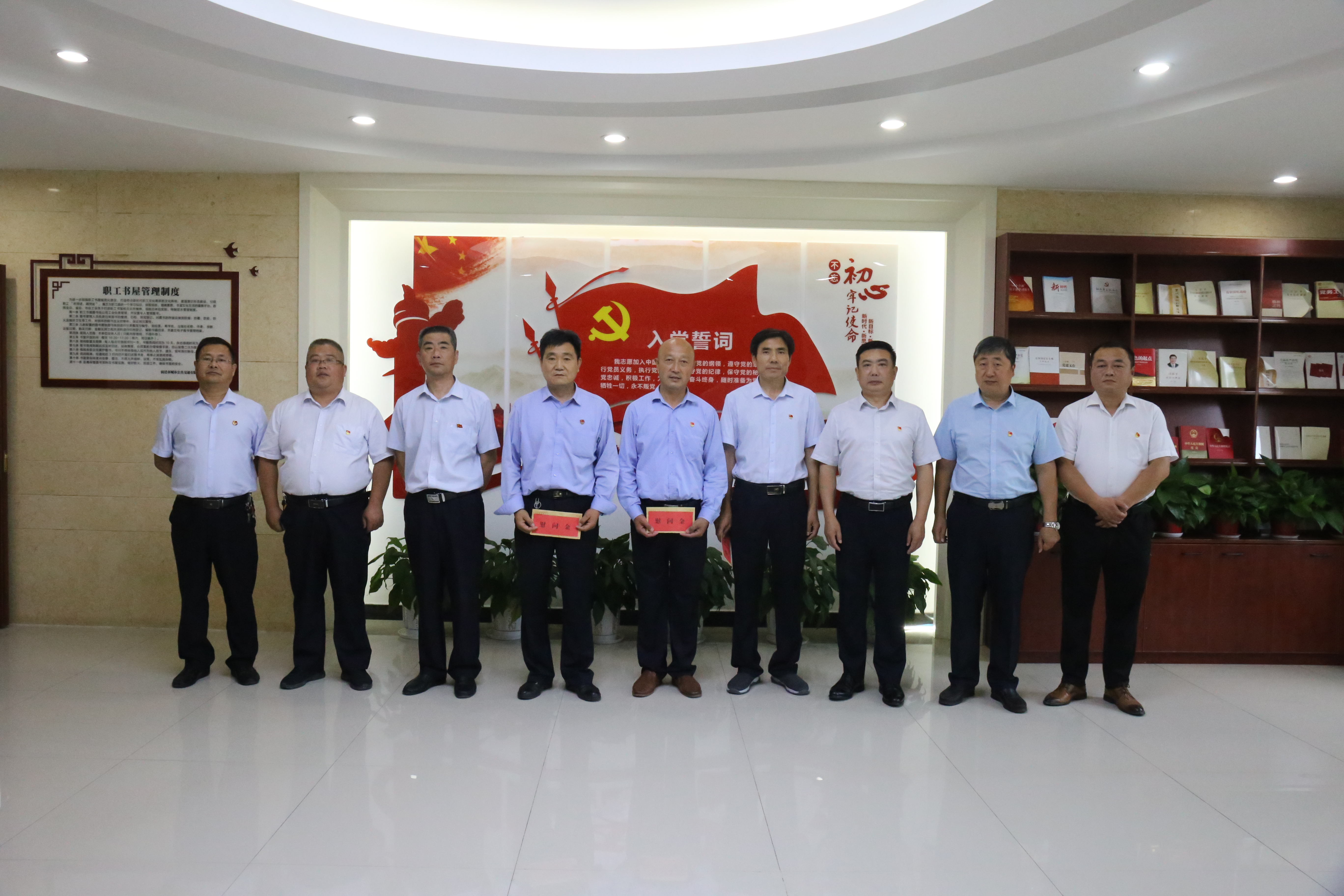 在職工書屋內,公交公司黨總支書記朱宗明帶領50余名黨員在黨旗下莊嚴宣誓。激昂的宣誓聲,讓全體黨員接受了一次精神上的教育和洗禮,更加堅定了理想信念。