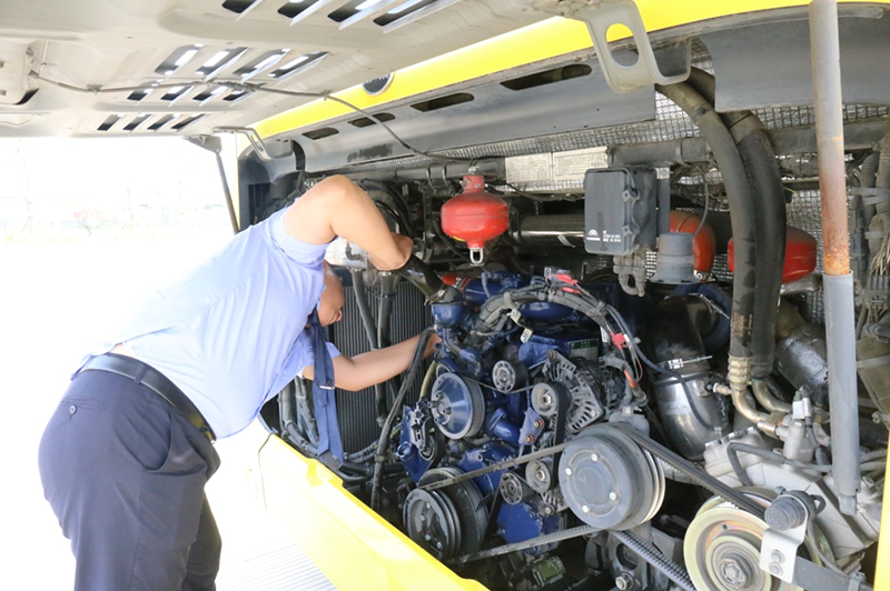 5點30分,當城市中的大多數(shù)人還在夢鄉(xiāng)時,302路公交車駕駛員高丁已經(jīng)來到公交場站。作為302路首班公交車駕駛員,為了確保公交車在夏季高溫期間技術(shù)狀況良好,他提前半個小時到崗做好發(fā)車前的各項準備工作。