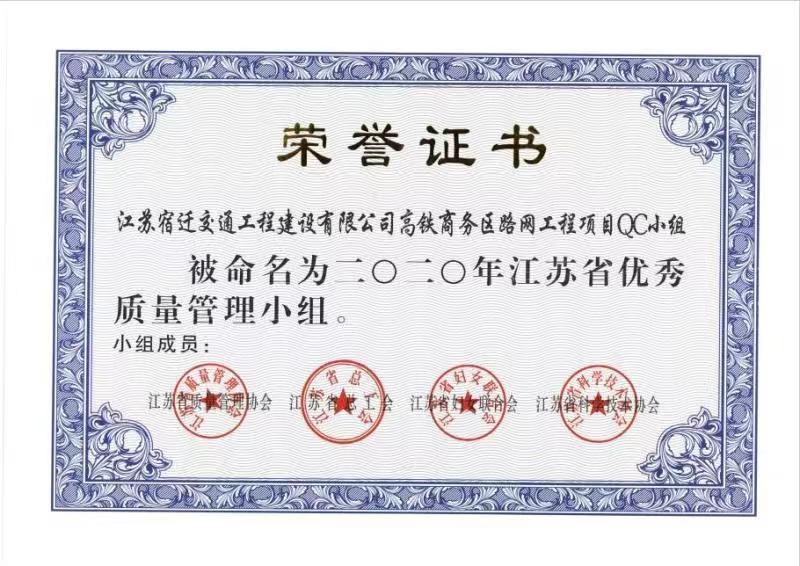 近日,宿遷交建的“高鐵商務(wù)區(qū)路網(wǎng)工程項(xiàng)目QC小組”被江蘇省質(zhì)量管理協(xié)會(huì)、江蘇省總工會(huì)、江蘇省婦女聯(lián)合會(huì)、江蘇省科學(xué)技術(shù)協(xié)會(huì)授予“2020年度江蘇省優(yōu)秀質(zhì)量管理小組”稱(chēng)號(hào)。同時(shí),該課題還被江蘇省質(zhì)量管理協(xié)會(huì)確認(rèn)為江蘇省優(yōu)秀質(zhì)量管理小組活動(dòng)三級(jí)技術(shù)成果。