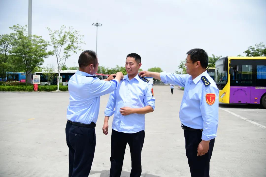 在他們新發(fā)的工作服肩章上配有“宿遷公交”字樣的標(biāo)志,“五角星”在陽(yáng)光的照耀下閃閃發(fā)光,臂章下面的“安全員”三個(gè)字醒目、莊重。這些都似乎在提醒著駕駛員師傅要時(shí)刻握緊手中的方向盤,為市區(qū)的乘客保駕護(hù)航。