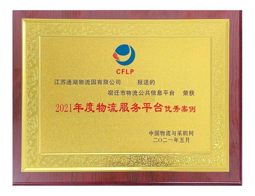 【通湖物流園】“宿遷市物流公共信息平臺”榮獲“2021年度物流服務(wù)平臺優(yōu)秀案例”稱號