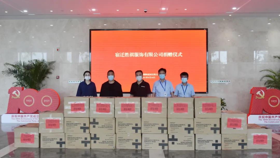 8月16日下午,宿遷勝祺服飾有限公司總經理通徐紅偉向通湖物流園捐贈5萬只口罩、1萬只醫(yī)用手套等防疫物資,支持園區(qū)疫情防控期間運輸服務工作。