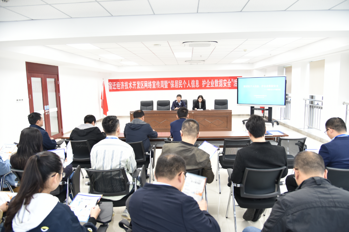 在宣傳周活動中,在園區(qū)LED大屏等載體上投放網(wǎng)絡(luò)安全宣傳圖,提升園區(qū)職工及租戶的網(wǎng)絡(luò)安全防護(hù)意識;參加宿遷經(jīng)濟技術(shù)開發(fā)區(qū)舉辦的“《小學(xué)生安全漫畫——網(wǎng)絡(luò)安全》讀本捐贈儀式”,為該區(qū)小學(xué)生送上了生動的網(wǎng)絡(luò)安全讀物;邀請宿遷經(jīng)濟技術(shù)開發(fā)區(qū)組織宣傳部領(lǐng)導(dǎo)為園區(qū)職工及租戶代表上了“保居民個人信息,護(hù)企業(yè)數(shù)據(jù)安全” 網(wǎng)絡(luò)安全專題講座,對數(shù)據(jù)安全問題案例、企業(yè)數(shù)據(jù)安全管理現(xiàn)狀、企業(yè)數(shù)據(jù)泄露途徑、企業(yè)數(shù)據(jù)泄露防范措施等方面進(jìn)行了專題講解,并為當(dāng)前園區(qū)網(wǎng)絡(luò)貨運業(yè)務(wù)開展及信息化、智慧化園區(qū)建設(shè)提供了新知識、新想法、新思路。