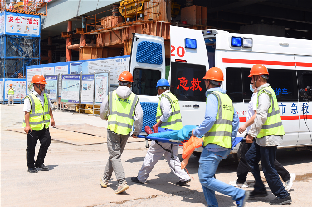據(jù)悉,此次演練結(jié)合項(xiàng)目實(shí)際,以“在施工過程中,一位作業(yè)人員突發(fā)中暑,一位作業(yè)人員不慎從棧橋上跌入水中”為模擬事件背景,采用真人、實(shí)地、實(shí)戰(zhàn)模式,演練內(nèi)容涉及人員中暑及落水事故的發(fā)現(xiàn)上報(bào)、預(yù)案啟動(dòng)、現(xiàn)場搶險(xiǎn)、醫(yī)療救援等內(nèi)容,涵蓋了事故應(yīng)急救援處置的各個(gè)環(huán)節(jié)。