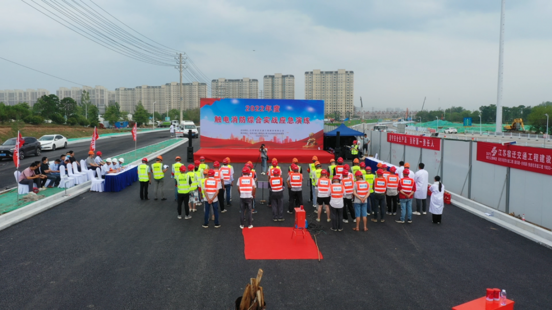 為深入推進2022年“安全生產月”活動開展,6月27日下午,宿遷交建在迎賓大道二期快速化改造工程2標段施工現(xiàn)場開展“觸電和火災綜合應急演練”。