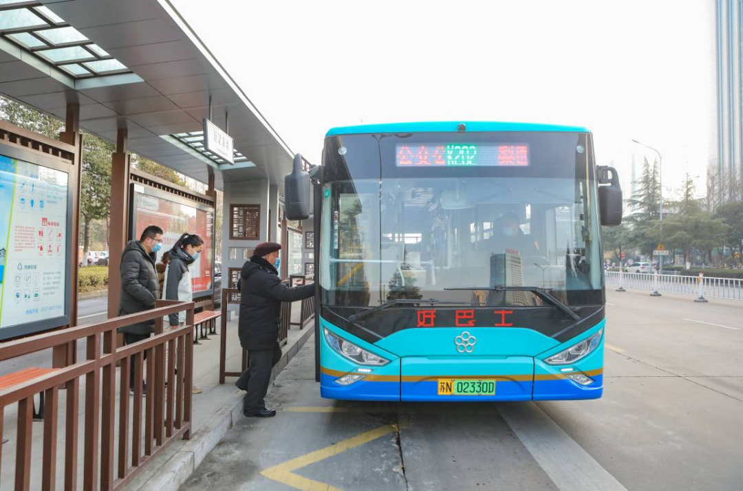 1月14日早上,離8:00還差2分鐘,牌號為蘇N077350的K202“好巴士”就穩(wěn)穩(wěn)地停在了宿遷市區(qū)金港花園站點(diǎn)。