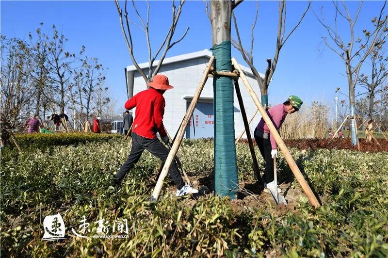 3月3日,工人在市高鐵商務(wù)區(qū)酒都廣場(chǎng)植樹栽花。眼下已進(jìn)入春季植樹造林的好時(shí)節(jié),連日來宿遷各地紛紛行動(dòng)起來利用晴好天氣參與植樹,為酒都宿遷增添新綠。