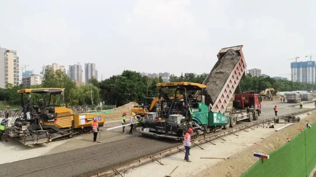 在北京路快速化改造工程2標(biāo)段施工現(xiàn)場,建設(shè)者們頂著太陽,腳踩著瀝青路面,身后是翻滾著瀝青料的攤鋪機(jī),他們汗流浹背,在烈日下仍然以飽滿的熱情和良好的工作狀態(tài)投入到瀝青攤鋪工作中。