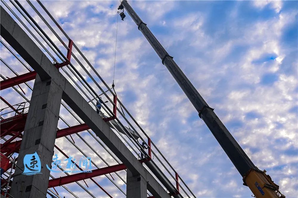 8月12日清晨,在江蘇通湖物流園二期工程施工現(xiàn)場,建設(shè)工人正在有序施工。