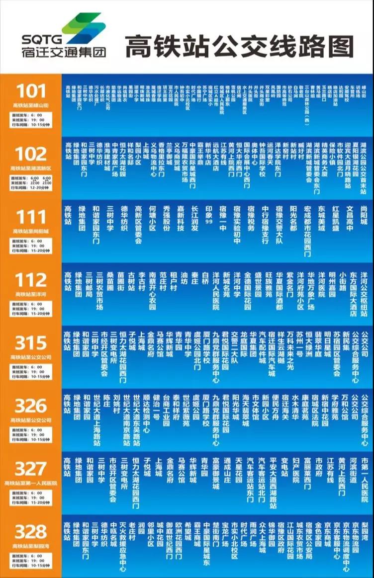 公交公司根據(jù)徐宿淮鹽鐵路宿遷站發(fā)車時(shí)間、密度、班次,科學(xué)規(guī)劃公交行車計(jì)劃,合理設(shè)置途經(jīng)站點(diǎn),設(shè)計(jì)制作風(fēng)格化線路走向示意圖,同時(shí)完善公交線網(wǎng)布局,新辟、優(yōu)化101路、102路等8條公交線路,直達(dá)宿遷站換乘中心。待鐵路開通后,將形成集高鐵、公交、長途客運(yùn)、出租車多種交通方式無縫對(duì)接和零距離換乘。