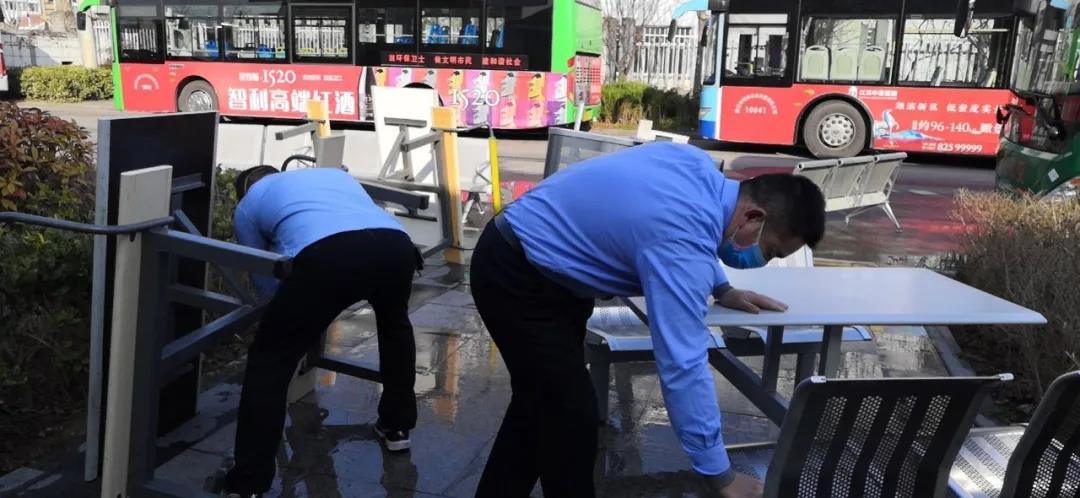 調(diào)度員和駕駛員對停車場進(jìn)行全面清掃,集中清理場站內(nèi)的衛(wèi)生死角,對餐廳內(nèi)座椅、空調(diào)、微波爐及辦公區(qū)設(shè)施設(shè)備逐一清洗、消毒,對地面地板徹底沖洗并噴灑消毒液。
